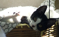 Mr P is neutered, micro-chipped, fully vaccinated, flea & worm treated. He is expert at using a litter tray and a pleasure to be with. If you are able to provide him with plenty of loving touch and play and if your home is in a traffic safe area, I very much look forward to hearing from you. Any children in the family would need to be gentle and at least school age. Thank you.