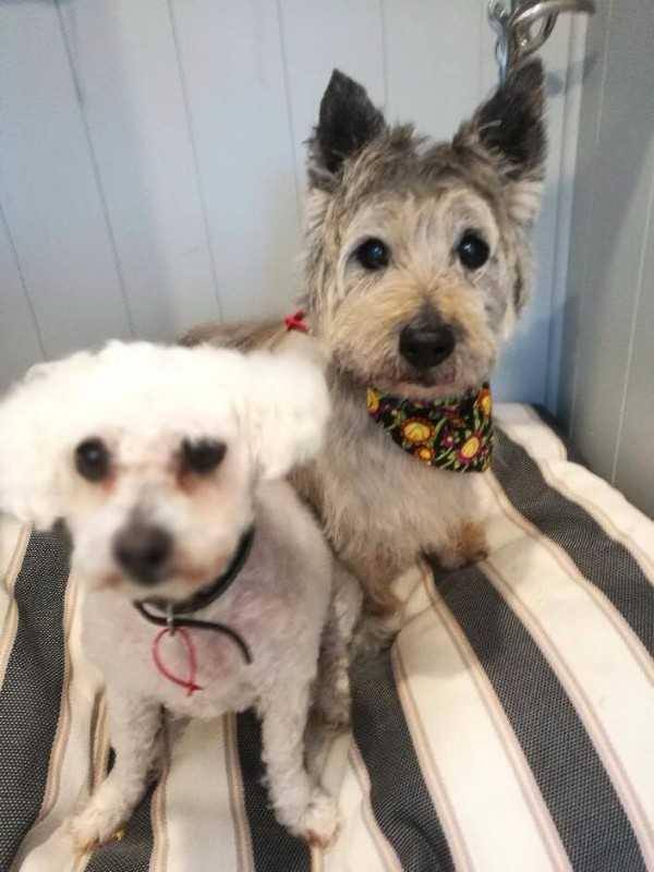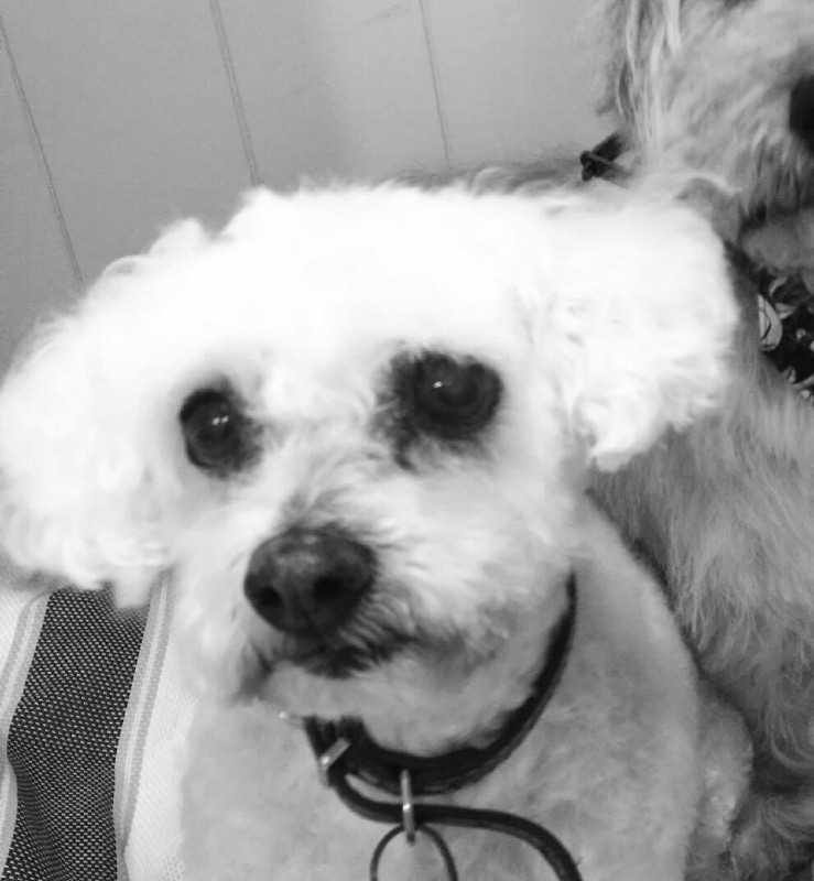 We have just rescued this timid, 11.5-year-old white Bichon Frise girl. Late this afternoon she was accidentally let off her fosterer's property on Bayswater Ave. Shy little Jenny is freshly groomed and wearing a green collar with pink flowers. We are beside ourselves with worry.