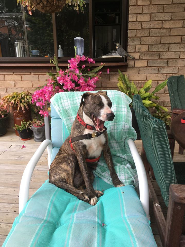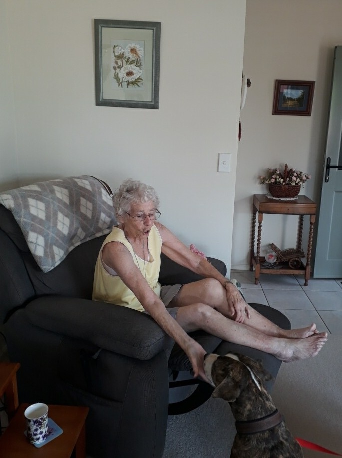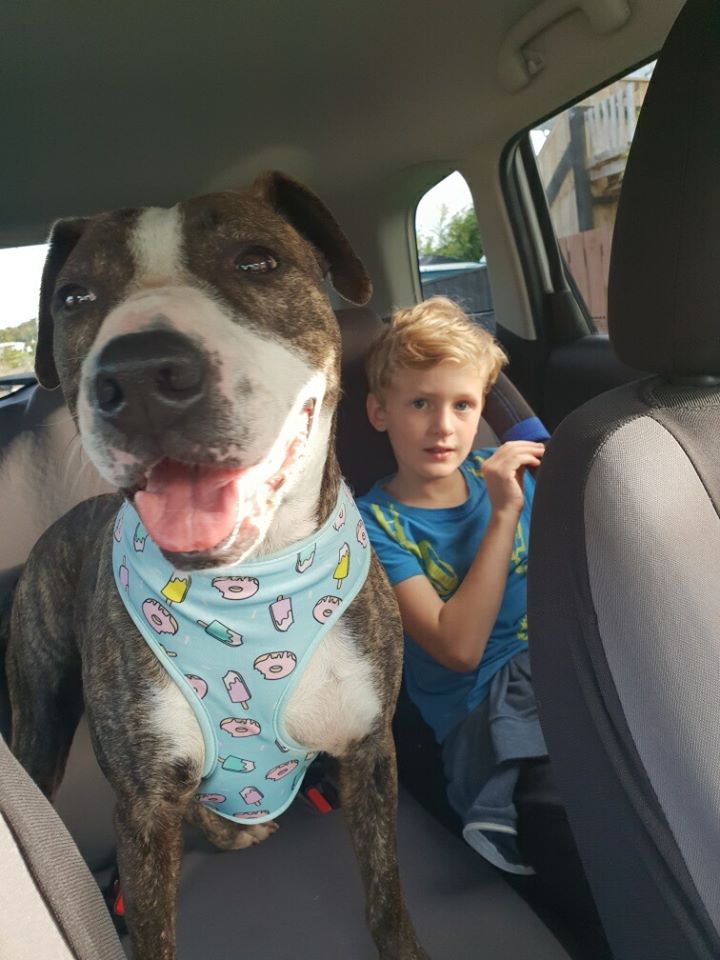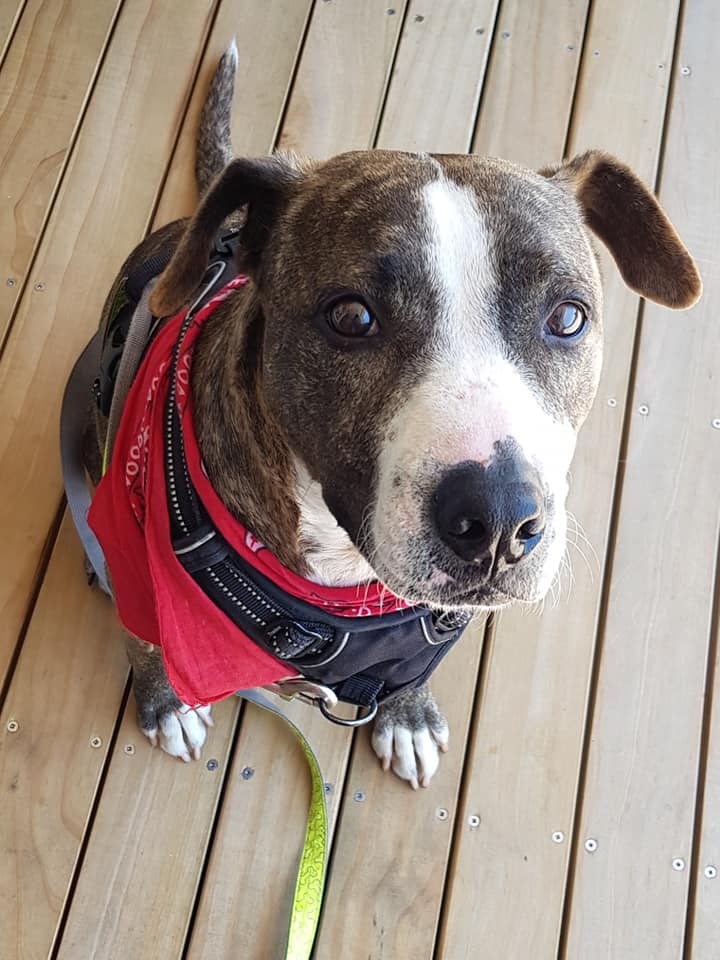 She is an affectionate 6-year-old Staffy x Boxer who is now spayed, vaccinated, micro-chipped and registered.